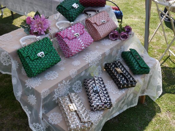 20:sayuri(輝きのあるビニール素材のワイヤーテープを使って仕上げるバッグ等)/@sayou.29(Instagram)